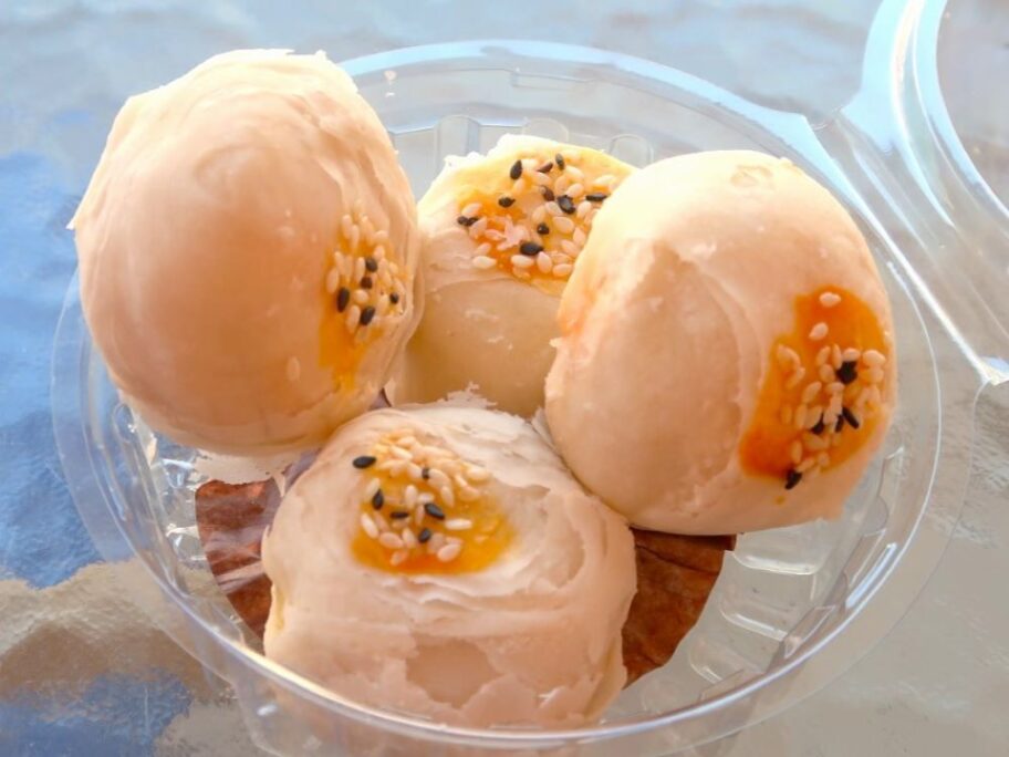 基本は緑豆あんが入ったものだが、塩漬けアヒル卵などいかにも中華な味の物もあります。