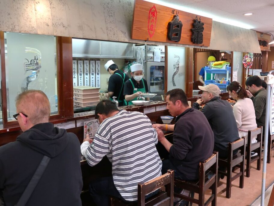 日本のジャージャー麵は2つの系統があります。ひとつは前述した物。もうひとつは盛岡の名物料理になっているじゃじゃ麵。これは戦後旧満州(現中国東北部)から引き揚げてきた高階貫勝(たかしなかんしょう)氏が白龍(ぱいろん)という店を開き、現地で食べた炸醤麺をアレンジした物を出したのが始まり。