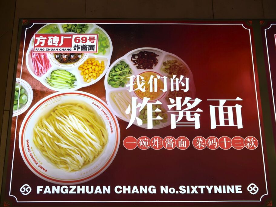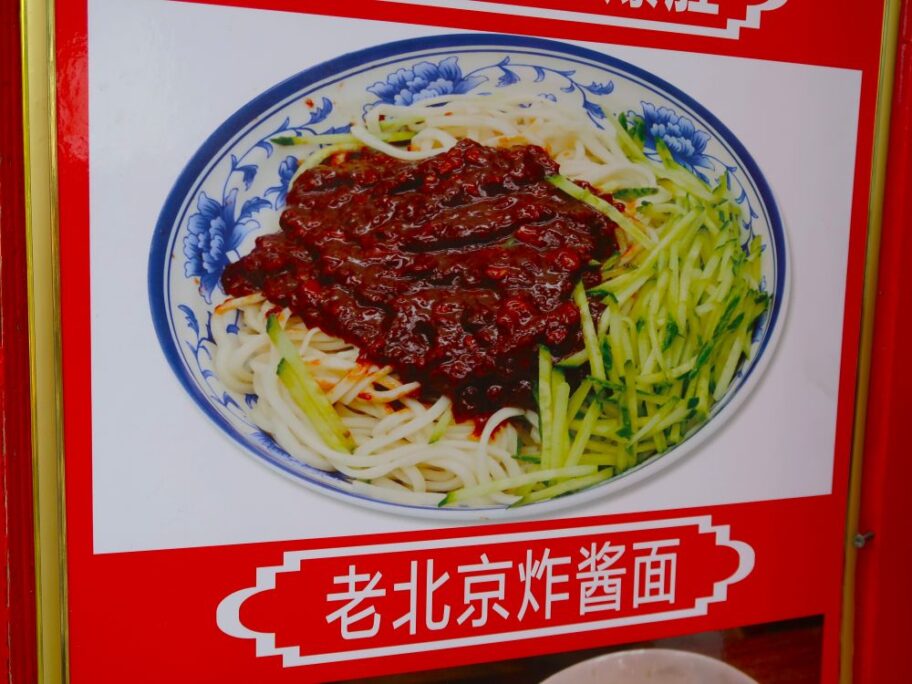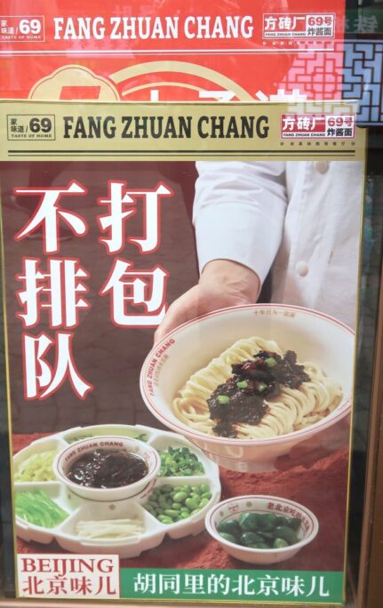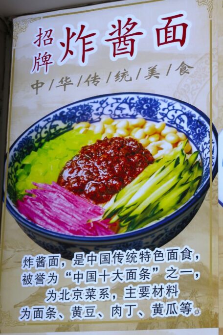 北京の観光地では①他店との差別化、②収益の増加、のために変化した様子。北京名物で推していますが他のメニューより値段も少し高い感じです。観光に関係ない地域や地方都市ではシンプルかつ安価なジャージャー麵が健在だと思いますが。