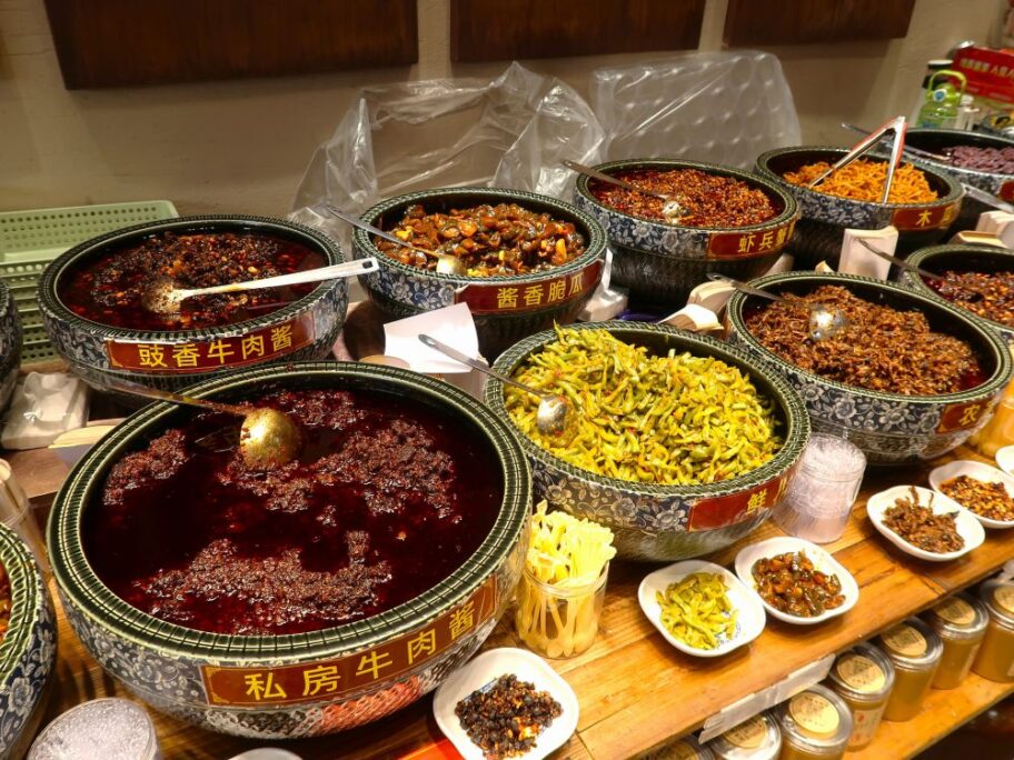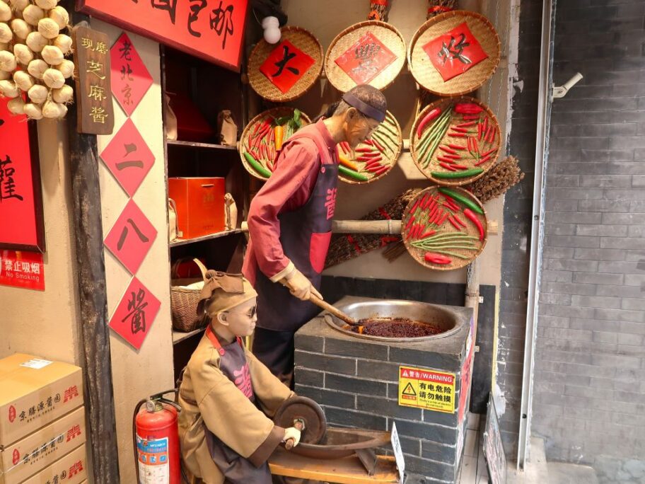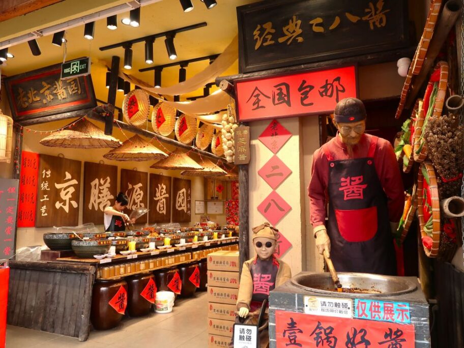 大柵欄で「醬」の専門店を発見しました。牛肉や野菜などを加えて「おかずとして食べる醬」のようです。「食べるラー油」や「金山寺味噌」のような物ですが、これを買えば簡単にジャージャー麵ができそう。