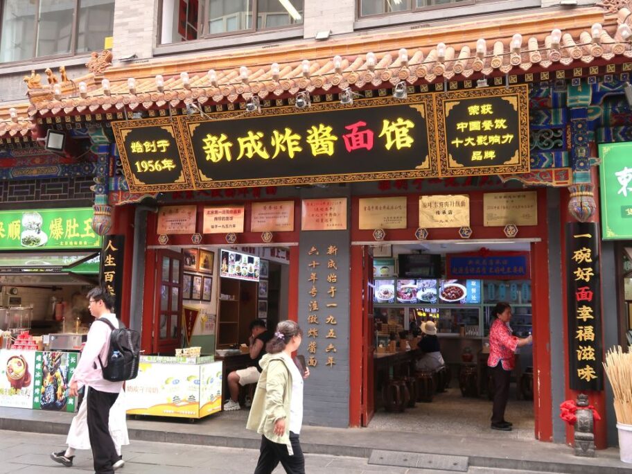 北京・前門繁華街ジャージャー麵の様子