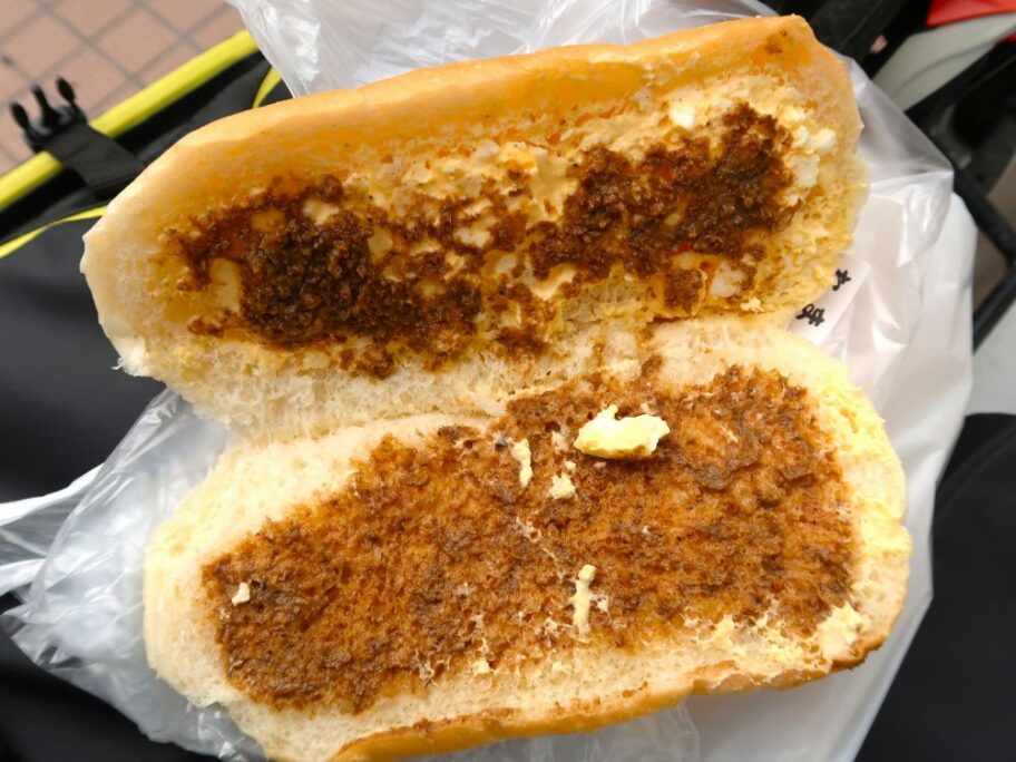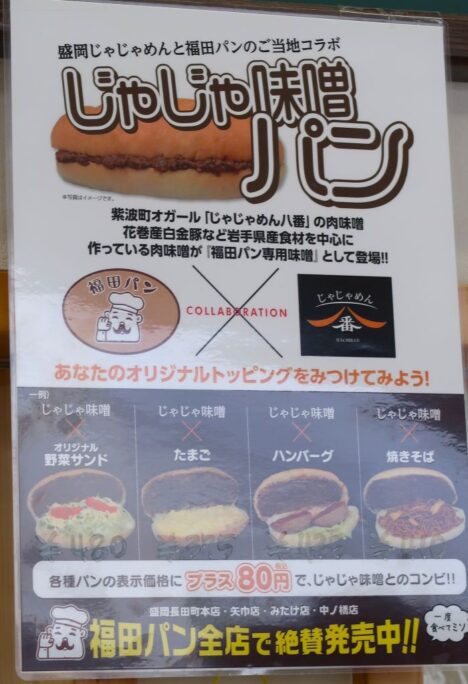 これも盛岡の名物食品です。コッペパンに様々な具を塗っていただく福田パンとじゃじゃ麵の味噌だれのコラボでした。