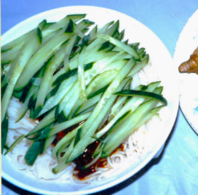 当時はそれが北京名物であることも知らず、白い麺に茶色い味噌だれがかかり、山のようにキュウリが盛られたシンプルさに唖然としました。